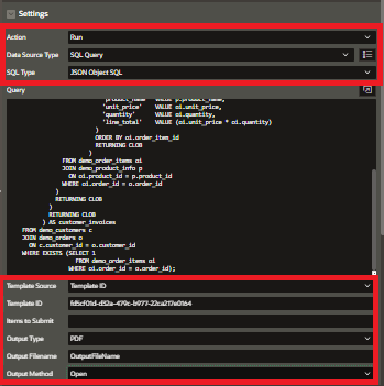 Before we touch the UI, we need to talk about the data. MaxPrint V2 thrives on structured data. Instead of only flat tables, we also use JSON Object SQL. This allows us to nest our “items” directly inside our “customer” records.